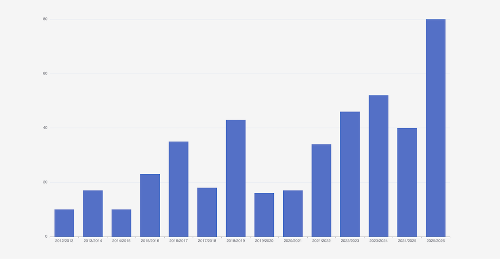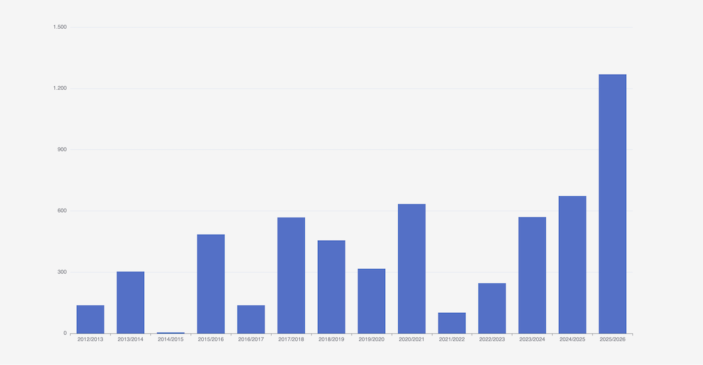 Folgende zwei Diagramme zeigen die Entwicklung von Graugans (oben) und Spießente (unten) seit 2013